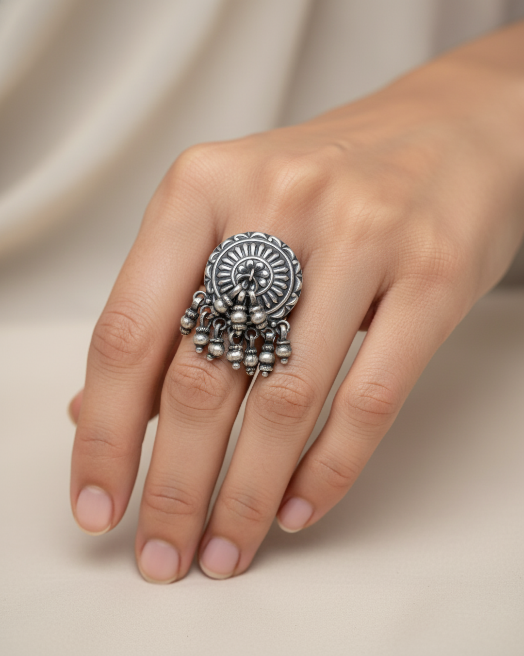 Handcrafted 925 Silver Ghungroo Dome Ring – Praag Jewel